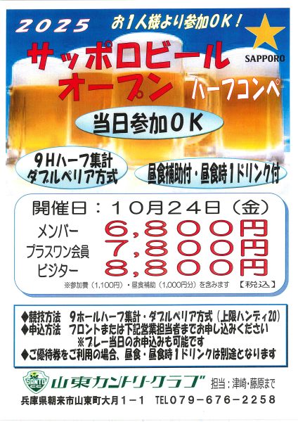 2025年10月度サッポロビールオープンハーフコンペ ☆申込用紙☆