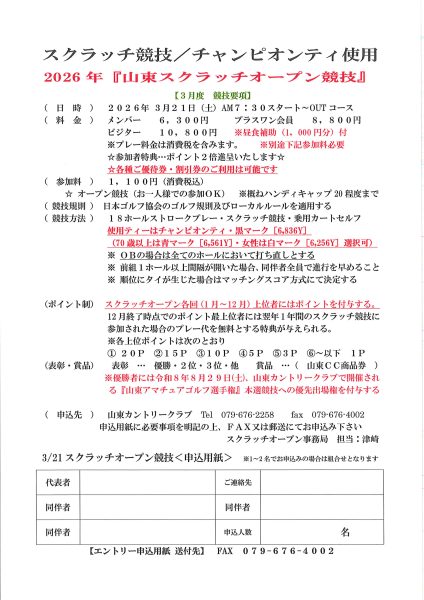 競技方法:18ホールストロークプレー/スクラッチ競技・ノータッチ