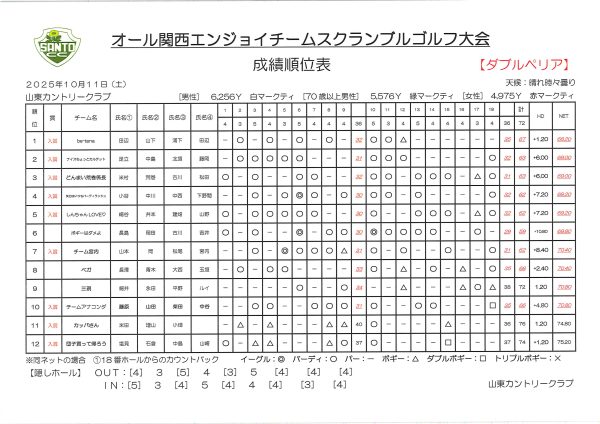 エンジョイ★チーム☆スクランブルゴルフ大会<10月11日成績表>