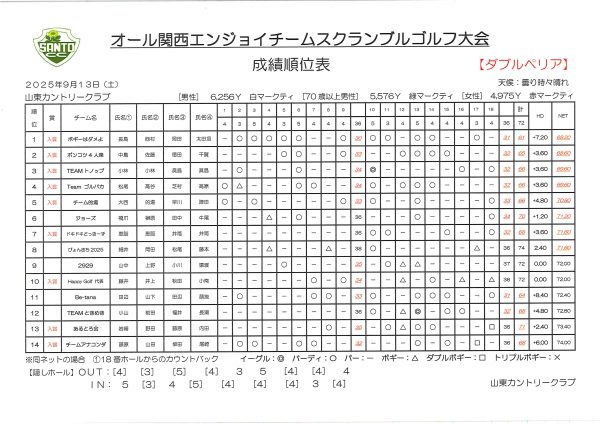 エンジョイ★チーム☆スクランブルゴルフ大会<9月13日成績表>