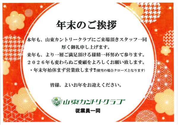 2025年山東CCをご愛顧いただき本当にありがとうございました ~皆様良いお年をお迎えください~