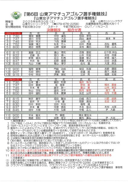 2025年度 山東アマチュアゴルフ選手権決勝競技 =組合せ・スタート時刻表=<最新>