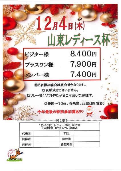 ・ 4日(木) 12月度レディース杯 OUT/IN 9:00~
