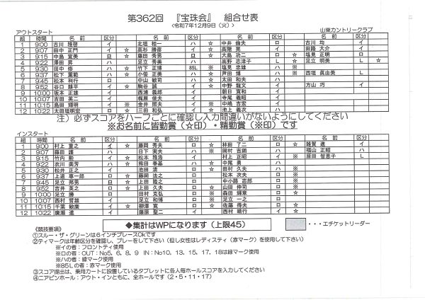 12月度宝珠会 =組合せ表=
